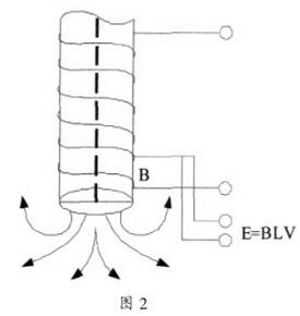 與一般污水流量計不同的是,插入式污水流量計的傳感器是外側形成外發(fā)射磁場,測量電極在傳感器的端部或兩側如圖2所示,值得注意的是,外發(fā)射磁場電磁流速傳感器的感應信號受流體和磁場的邊界層厚度影響,會降低測量的線性度。