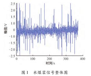 針對水泥泥漿流量計測量水煤漿時出現(xiàn)較大波動,甚至回零這一問題,特去某煤化工企業(yè)甲醇分公司進行現(xiàn)場數(shù)據(jù)采集。該公司所使用的對置式四噴嘴氣化有4個噴嘴,噴嘴管道口徑為125mm,管中水煤漿流量基本穩(wěn)定在19m³/h(流速約為0.48m/s)。每條噴嘴煤漿線上安裝了3臺水泥泥漿流量計,每臺水泥泥漿流量計由傳感器和變送器兩部分組成。選擇其中1條水煤漿管線上的1臺水泥泥漿流量計進行數(shù)據(jù)采集,因為該臺水泥泥漿流量計測量結(jié)果波動大,甚至出現(xiàn)回零的現(xiàn)象。將課題組研制的基于DSP的電磁流量變送器的信號線和勵磁線接到該電磁流量傳感器的電極和勵磁線圈上,組合成完整的水泥泥漿流量計,進行水煤漿數(shù)據(jù)采集。使用的電磁流量變送器是以TI公司DSP芯片TMS320F28335為核心,采用高頻勵磁方案,其硬件主要包括勵磁控制系統(tǒng)和信號采集處理系統(tǒng),具體的模塊有勵磁驅(qū)動模塊、信號調(diào)理采集模塊、信號處理控制模塊、人機接口模塊、通信模塊及電源管理模塊。信號調(diào)理采集模塊中的調(diào)理電路對一次儀表輸出的信號進行放大和濾波,截止頻率是2kHz,放大倍數(shù)約為230倍。通過NI公司USB-6216型號的數(shù)據(jù)采集卡進行數(shù)據(jù)采集,把調(diào)理電路的輸出端連接到數(shù)據(jù)采集卡的一個差分輸入端,并設(shè)置數(shù)據(jù)采集卡工作在差分的測量模式,設(shè)置采集卡的采樣頻率為10kHz。采集多組水煤漿信號數(shù)據(jù),每組數(shù)據(jù)的時間長度為5min。