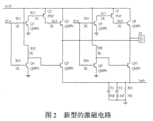 為此,設計了一個新型的激磁電路,并將激勵電流反饋到A/D轉換器,以消除激勵電流不穩(wěn)定對A/D轉換結果的影響,如圖2。