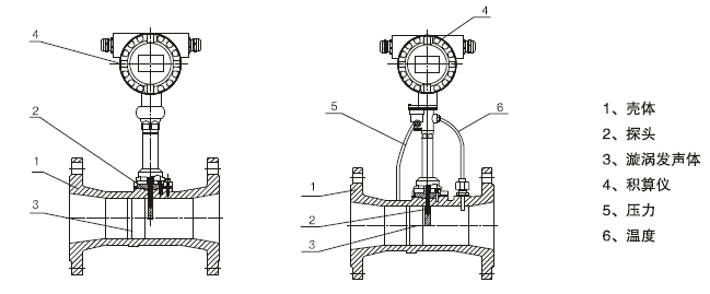 6、渦街流量計測量體積流量時不需補償,渦街輸出的信號實際上是與流速成線性關系的,也就是與體積流量成正比。壓力和溫度補償?shù)哪康氖菫榱说玫搅黧w的密度,乘以體積流量就得到質量流量,若測量氣體的體積流量就不需要補償了。