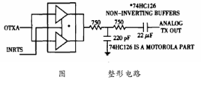 如圖4所示,緩沖器74HC126的作用是使方波的上升沿和下降沿趨于平緩,使信號滿足HART物理層規(guī)范所要求的信號波形上升沿和下沿的時要求,因?yàn)檩^平緩的上升沿和下降沿時間可以降低與其它網(wǎng)絡(luò)間的串?dāng)_。