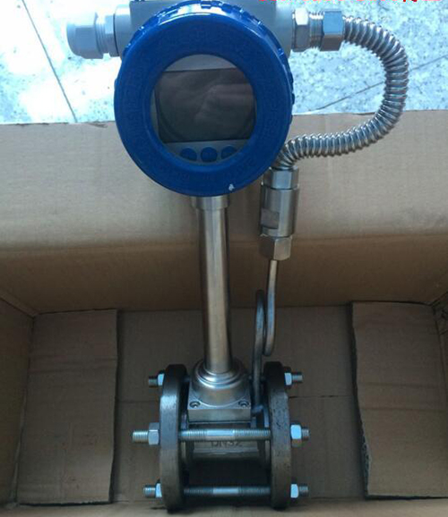 2、溫度補償一體型渦街流量計還帶有溫度傳感器,可以直接測量出飽和蒸汽的溫度并計算出壓力,從而顯示飽和蒸汽的質量流量。