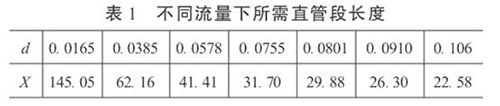 3.直管段長度和生物柴油流量計精度的初步預(yù)測在工程設(shè)計中,根據(jù)流體性質(zhì)、流量和雷諾數(shù)確定α和d值。這樣,按照式(5)就可以依不同的流量計精度要求,對直管段長度進(jìn)行初步預(yù)測,或確定直管段長度后,對流量計的精度做初步預(yù)測。當(dāng)δ= 0.2%時,不同流量下所需直管段長度見表1。