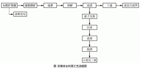 本項目為石煤綜合利用的項目?,F(xiàn)有提釩工藝產(chǎn)生大量廢渣。其主要成分為二氧化硅,但其中夾帶有大量的釩資源,釩資源利用率低,同時,該廢渣中堿含量較高,如將廢渣隨意堆放,易造成環(huán)境污染。本項目*大特點(diǎn)在于利用現(xiàn)有提釩工藝中的提釩二次渣作為制備沉淀法白炭黑的主要原料,將廢渣中的硅資源得到充分利用。為企業(yè)創(chuàng)造了新的經(jīng)濟(jì)增長點(diǎn),同時,解決了現(xiàn)有提釩生產(chǎn)中造成的釩資源浪費(fèi)和環(huán)境污染問題,此外,該項目利用現(xiàn)有提釩生產(chǎn)線脫碳工序中產(chǎn)生的余熱作為加熱熱源,取代了傳統(tǒng)工藝以煙煤為主要燃料的方法,即對生產(chǎn)中產(chǎn)生的余熱得到了有效合理的利用,又進(jìn)一步降低了產(chǎn)生的燃料成本,達(dá)到了節(jié)能減排,資源綜合利用的目的,工藝流程框圖如下。