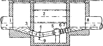 由于大口徑管道在多數(shù)場(chǎng)合下是埋在地下的,因此大口徑傳感器在安裝前應(yīng)做好水泥地坑。圖6-19所示是在給排水系統(tǒng)中常見的安裝形式。水泥地坑應(yīng)有足夠的活動(dòng)空間,側(cè)壁埋有敷設(shè)電纜的鋼管,上有蓋板防止雨淋,下有泄水管以免坑內(nèi)積水而使傳感器侵水。為了拆裝方便,傳感器應(yīng)放在墊腳上,且在下游側(cè)裝有活絡(luò)的伸縮管。圖6-20是熱水流量計(jì)在地下水泥管污水排放系統(tǒng)中的安裝實(shí)例。
