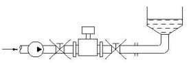 4.當(dāng)向下管道長度超過5m時,在傳感器后安裝一個虹吸管或一個放氣閥。以避免低壓而可能造成的對測量管襯里的破壞。保證滿管,減少含氣量。