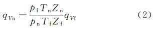 式中:qVf--工況條件下的體積流量,m3/h;qVn--標準狀態(tài)體積流量,m3/h;pf,pn--工作狀態(tài)、標準狀態(tài)流體絕對靜壓,MPa,pn=0.101325MPa;Tf,Tn--工況條件下、標準狀態(tài)流體熱力學溫度,K,Tn=293.15K;Zf,Zn--工況條件下、標準狀態(tài)氣體壓縮系數(shù)。