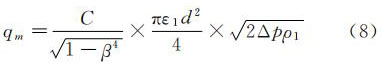 式中:C--流出系數(shù);β--直徑比,β=d/D;D--管道內徑,m;d--工作條件下節(jié)流件的開孔直徑,m;ε1--節(jié)流件正端取壓口平面上的可膨脹性系數(shù);ρ1--節(jié)流件正端取壓口平面上的流體密度,kg/m3。