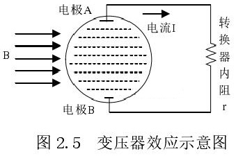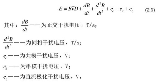 從上圖 2.5 中可以觀察到兩個電極、勵磁線圈、轉換器內阻之間形成了一個閉合回路,將此回路稱之為初級繞組,從理論上進行分析,磁力線 B 應當平行于勵磁線圈所產(chǎn)生的磁感應線,但在實際的應用過程中由于工藝差異,因此無法達到理想狀態(tài),會產(chǎn)生磁力線穿過勵磁線圈磁感應線的情況,此時將會產(chǎn)生相應的感應電動勢,將此部分感應電動勢稱為變壓器效應。此效應同樣滿足于楞次定律,利用楞次定律進行計算可得如下電動勢: