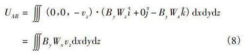 式中V為純水流量計傳感器測量空間;W→為權函數(shù)。在直角坐標系(x,y,z)中,式(5)可以轉(zhuǎn)換為