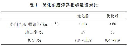 氣體轉(zhuǎn)子流量計制造過程優(yōu)化設(shè)計完成后,在原選煤廠進行為期三個月的工業(yè)試驗,并對優(yōu)化前后的浮選關(guān)鍵指標參數(shù)進行統(tǒng)計和分析。應(yīng)用情況數(shù)據(jù)表明,經(jīng)過優(yōu)化設(shè)計的浮選自動控制系統(tǒng),各關(guān)鍵浮選指標參數(shù)都有明顯提升,詳見表1