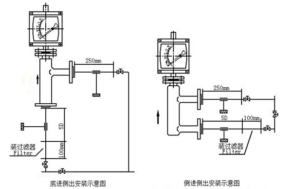 4.若介質(zhì)中含有固體雜質(zhì),應(yīng)在閥門和直管段間加裝過濾器;若介質(zhì)中含有鐵磁物質(zhì),應(yīng)在金屬浮子流量計(jì)的上游安裝磁過濾器。