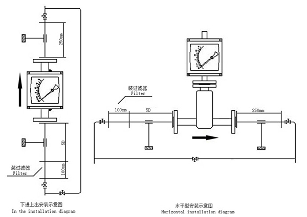 4.若介質(zhì)中含有固體雜質(zhì),應(yīng)在閥門和直管段間加裝過濾器;若介質(zhì)中含有鐵磁物質(zhì),應(yīng)在指針浮子流量計(jì)的上游安裝磁過濾器。