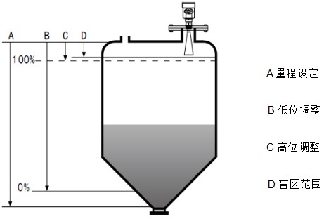 注:使用瀝青液位計時,務必保證*高料位不能進入測量盲區(qū)(圖中D所示區(qū)域)。