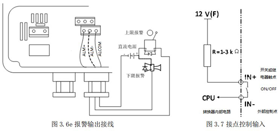 1.4.6 外部控制接點輸入(IN+、IN-)由開關或繼電器觸點 ON/OFF 控制,見圖 3.7。