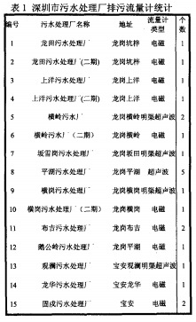 截止目前,深圳市內(nèi)外所有污水處理廠(包括人工濕地、快滲)共計30余座,重點監(jiān)控的排污流量計50余臺。統(tǒng)計數(shù)據(jù)如下表(見表1)