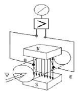 測(cè)量流量時(shí),導(dǎo)電性液體相當(dāng)于法拉*試驗(yàn)中的導(dǎo)電金屬棒,以平均速度v流過垂直于流動(dòng)方向的磁場(chǎng)。導(dǎo)電性液體的流動(dòng),在測(cè)量電極上感應(yīng)出與平均流速成正比的電壓。其感應(yīng)電壓信號(hào)E通過一對(duì)或一對(duì)以上的與液體直接接觸的電極檢測(cè)出來。